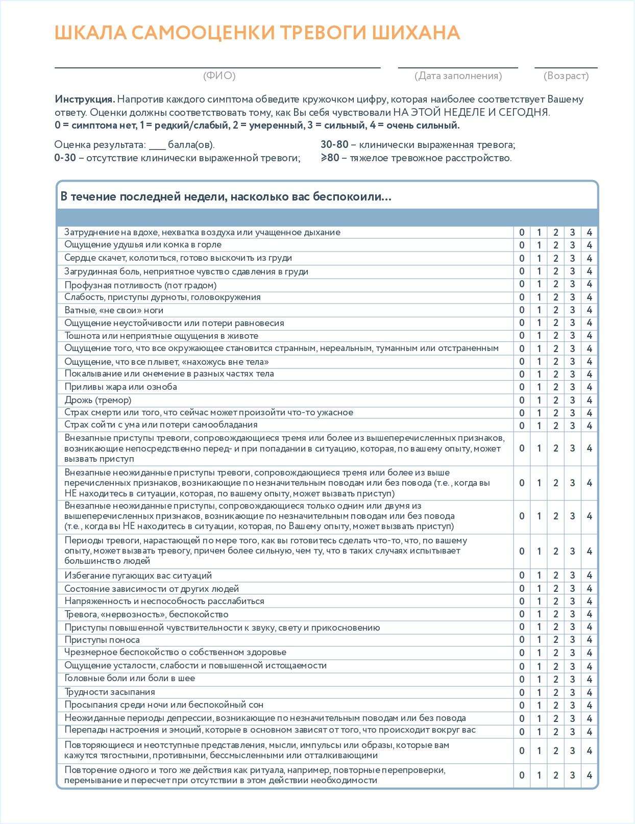 Шкала самооценки тревоги Шихана